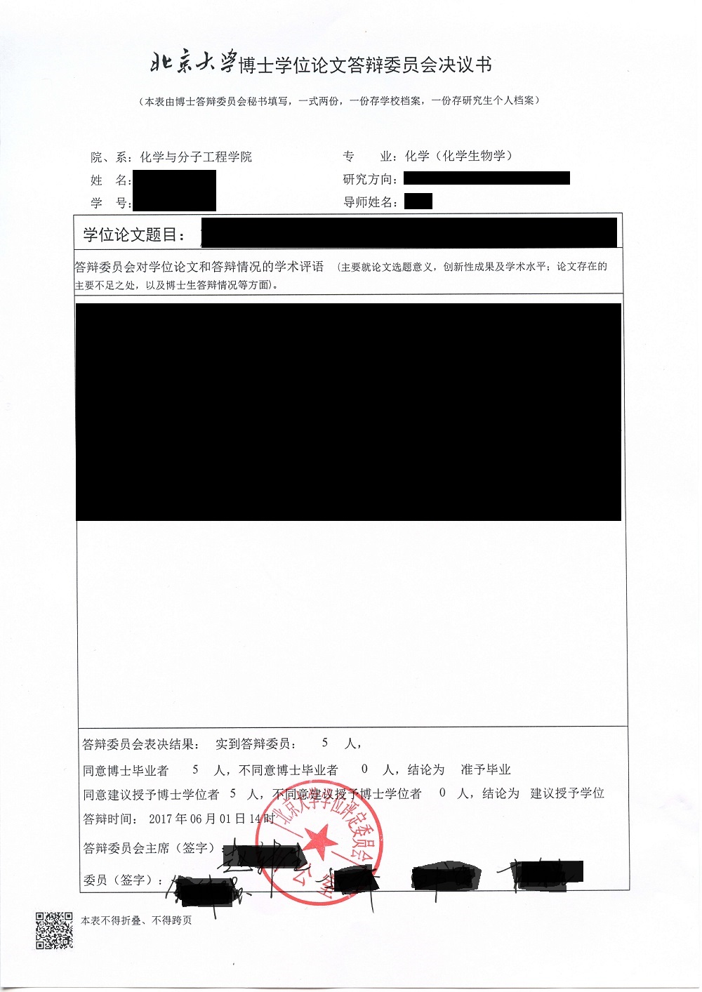 注:尚未获得证书者,应出具博士学位论文答辩委员会决议书复印件加盖高校或科研单位学位评定委员会公章,其中国(境)外高校或科研单位毕业者,若无该类型答辩决议,须补充提交6个月内获得学位证书的个人承诺书且本人签字,后续获得学位证书后在系统上传(无需提交纸质版)