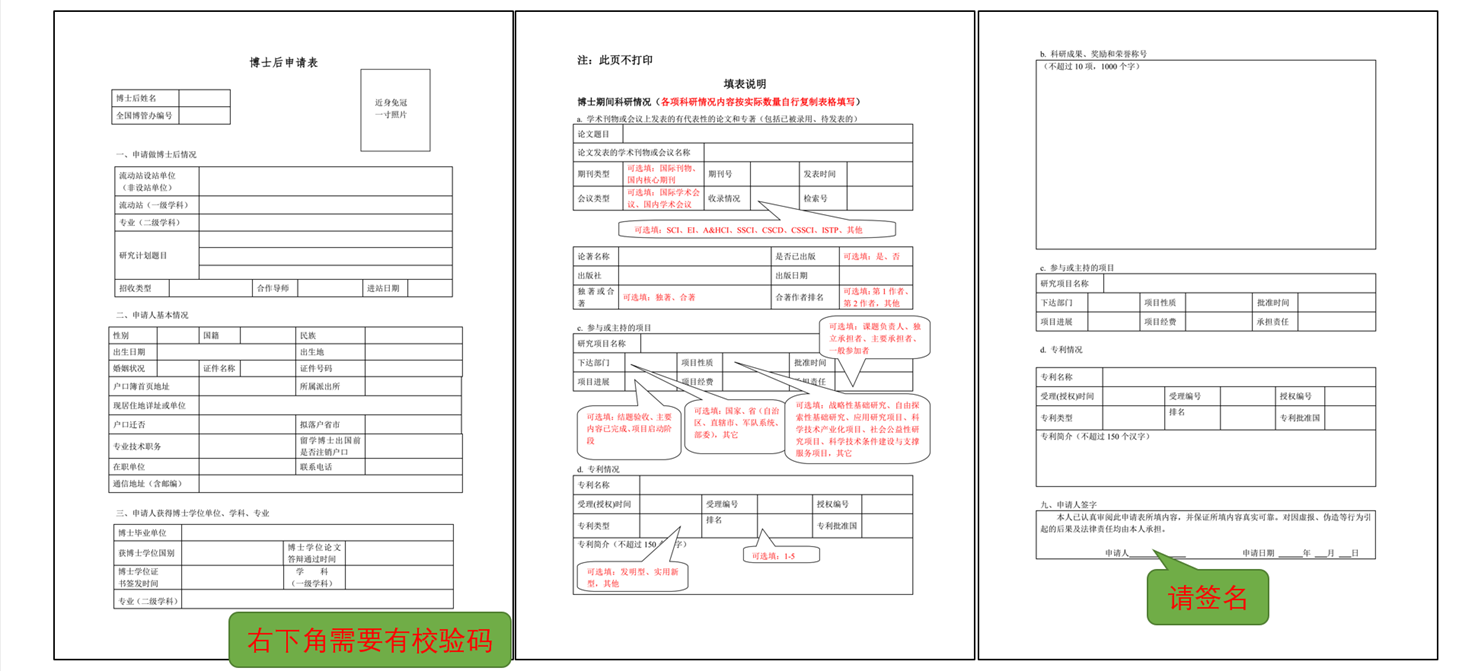 材料5:博士后申请表,一式2份(须网上在线填写完后,打印带校验码的博士后申请表,本人签字,网站地址:http://www.chinapostdoctor.org.cn/auth/login.html )