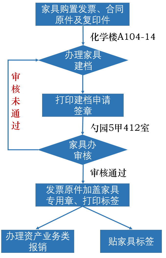 2. 家具建账:请将家具发票、合同或清单拍照发送至zhengshi@pku.edu.cn,邮件内容请写明家具品牌、材质,放置具体地点,领用人、使用对象(学生或教工);具体流程参考上图。