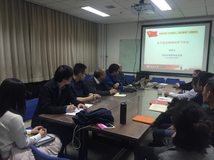 为扎实开展“不忘初心、牢记使命”主题教育,不断提高支部党员的政治觉悟和理论水平,无机所于11月13日下午,组织党员围绕“延安精神”进行专题研讨学习,邀请学院党委书记马玉国教授到会指导。