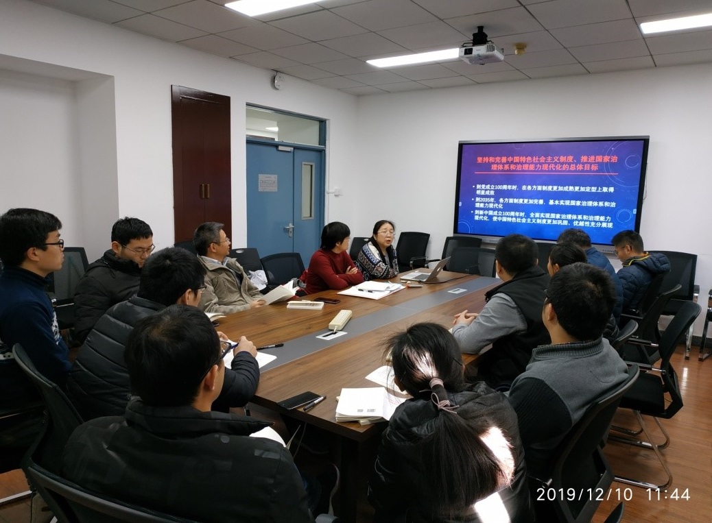 2019年12月3日和12月10日,有机所党支部组织全体党员在B535会议室集中深入学习研讨了党的十九届四中全会精神。支部书记还以PPT形式向支部全体党员们详细报告了个人学习体会。并希望党员们通过对《决定》的学习,能准确理解我国国家制度和国家治理体系的演进方向和规律,坚持和完善中国特色社会主义制度,同时号召支部全体党员扎根科研,积极应对风险挑战,为实现中华民族伟大复兴的中国梦而努力奋斗。
