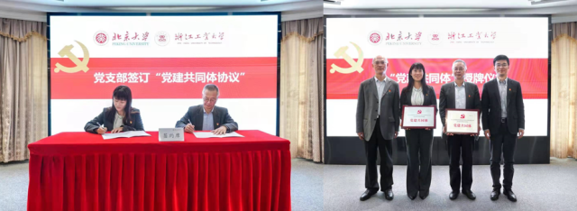 范星河代表化学学院高分子系党支部与浙江工业大学材料学院高分子教工党支部签订了“党建共同体”协议。双方将以共建为起点,深入开展“党史联学、党务联建、科研联攻”等工作,协同破解高校二级学院党建工作中的难点和问题,共同促进双方党史学习教育进一步深入开展。
