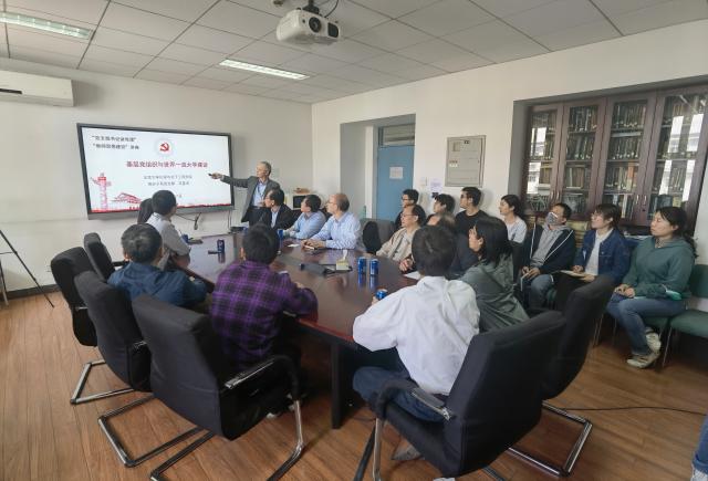 2021年4月27日,高分子系党支部书记范星河为全系党员和教师讲授题为“基层党组织与世界一流大学建设”的专题党课,全系党员和教师参加。