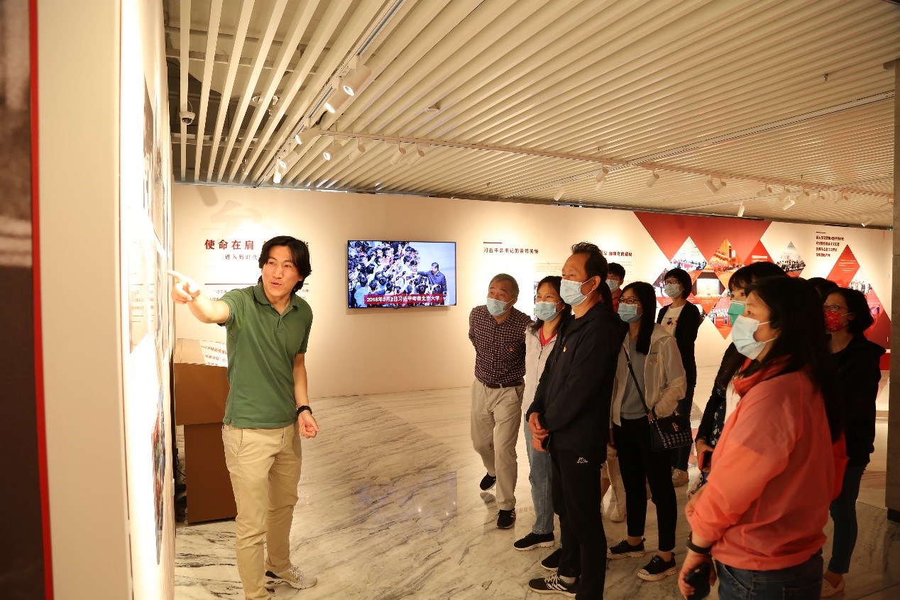 作为学校庆祝建党百年的主要活动内容之一,此次展览突出了政治性、教育性、普及性、互动性和原创性,全方位、立体式、多角度地展现了百年来北京大学与中国共产党同心同向同行的光辉历程,特别聚焦了党的十八大以来,在以习近平同志为核心的党中央领导下,北大改革发展取得的新成效、打开的新局面,从整体上反映了北大人在不同历史时期坚守初心、矢志报国的精神风貌,营造了团结奋进、开创新局的浓厚氛围,为党史学习教育提供了生动素材。展览以图文展示为主要形式,兼顾历史叙事主线。在讲解员的带领下,依次参观了以下三部分主要内容:
