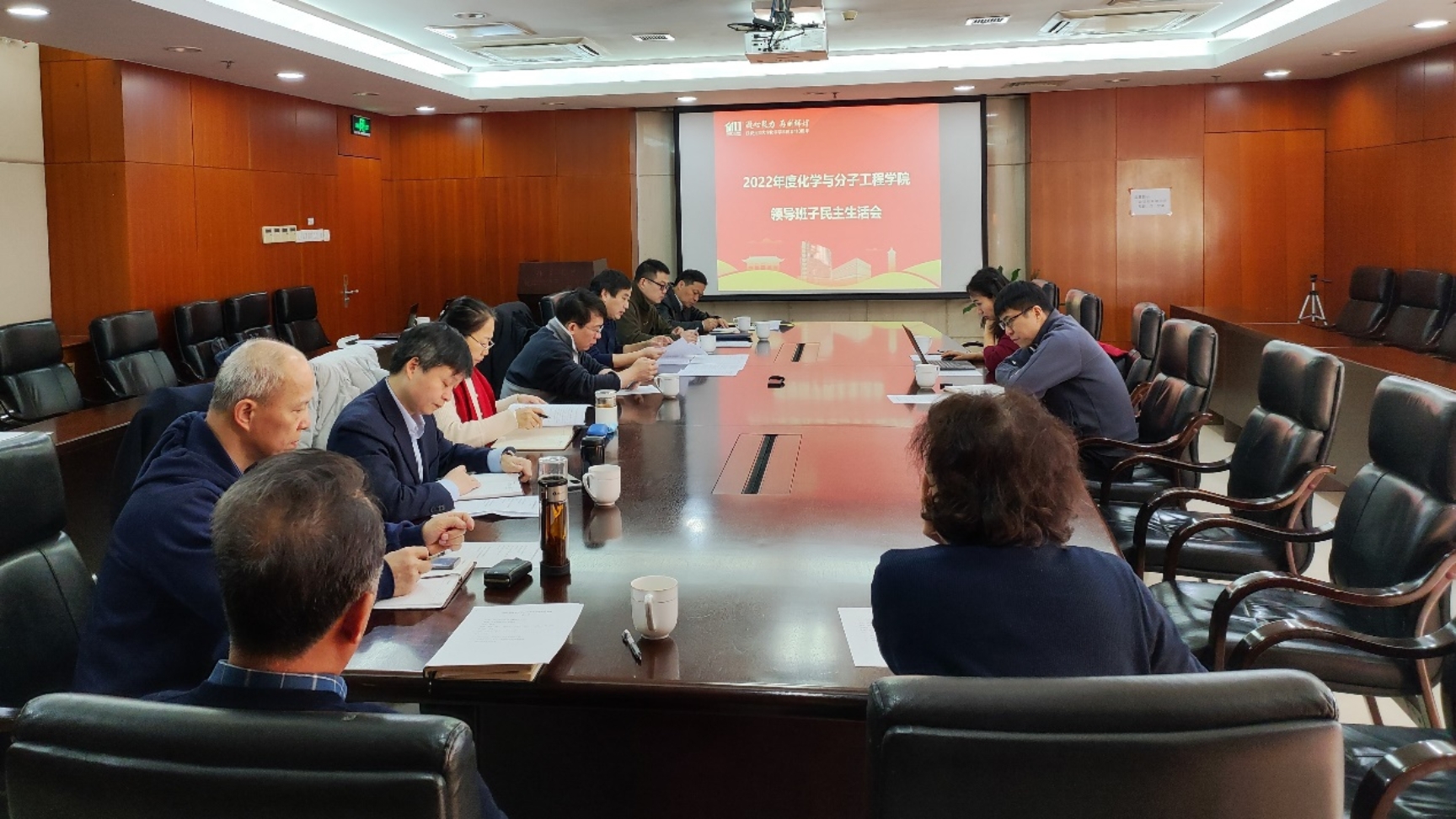 2023年2月19日上午,根据北京大学党委的统一部署,化学学院2022年度领导班子民主生活会在化学院A205会议室召开。学校中层领导班子民主生活会第一指导组副组长原帅和北京大学纪委委员马化祥到会指导并作点评讲话。化学学院党委书记裴坚主持会议,学院全体领导班子成员参加会议。