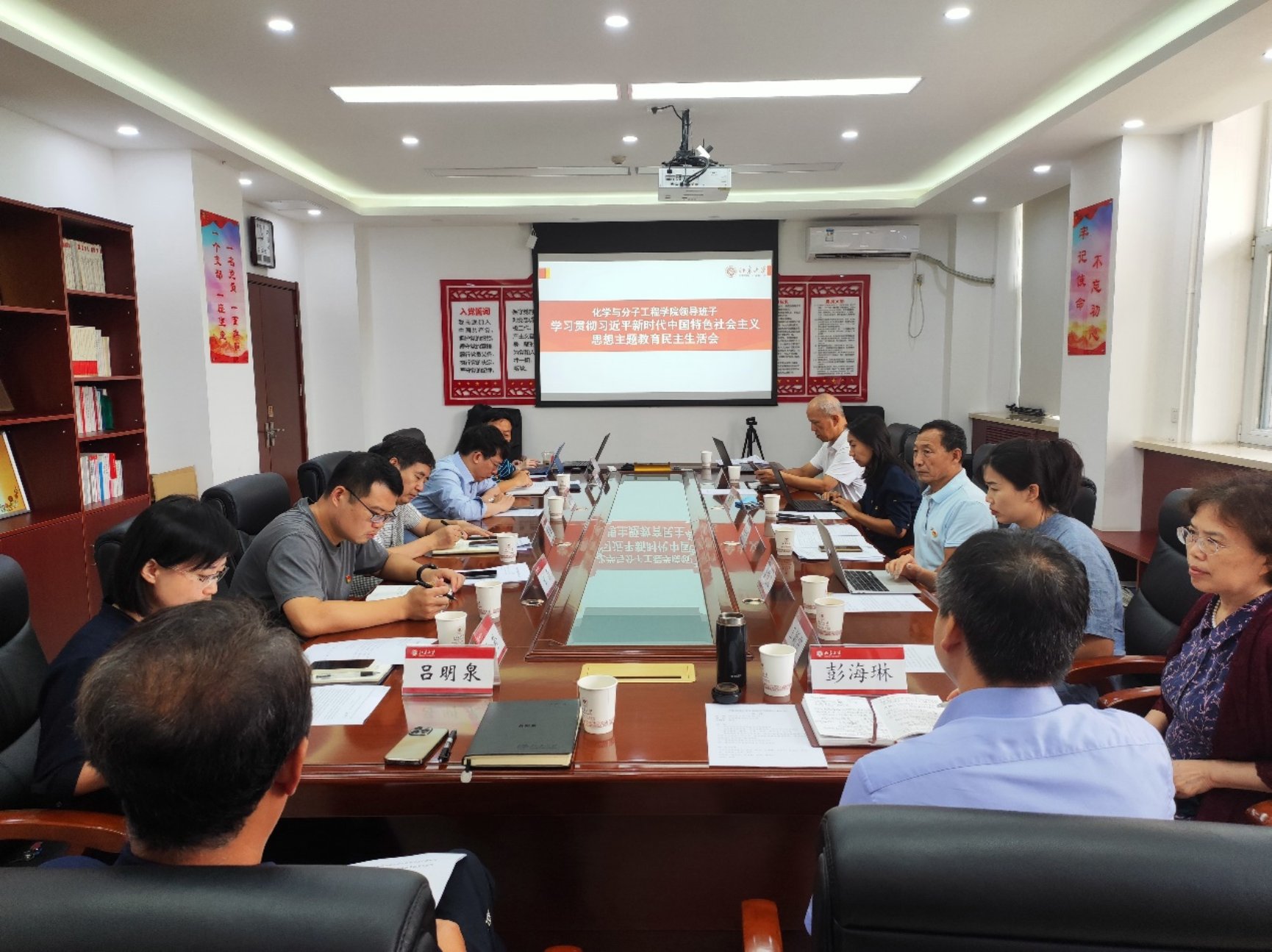2023年9月7日上午,根据北京大学党委的统一部署,化学学院2023年度学习贯彻习近平新时代中国特色社会主义思想主题教育民主生活会在化学院B229会议室召开。学校主题教育第一指导组组长刘宝栓、副组长原帅、柴玥儿到会指导并作点评讲话。化学学院党委书记裴坚主持会议,化学学院院长陈兴等全体领导班子成员参加会议。