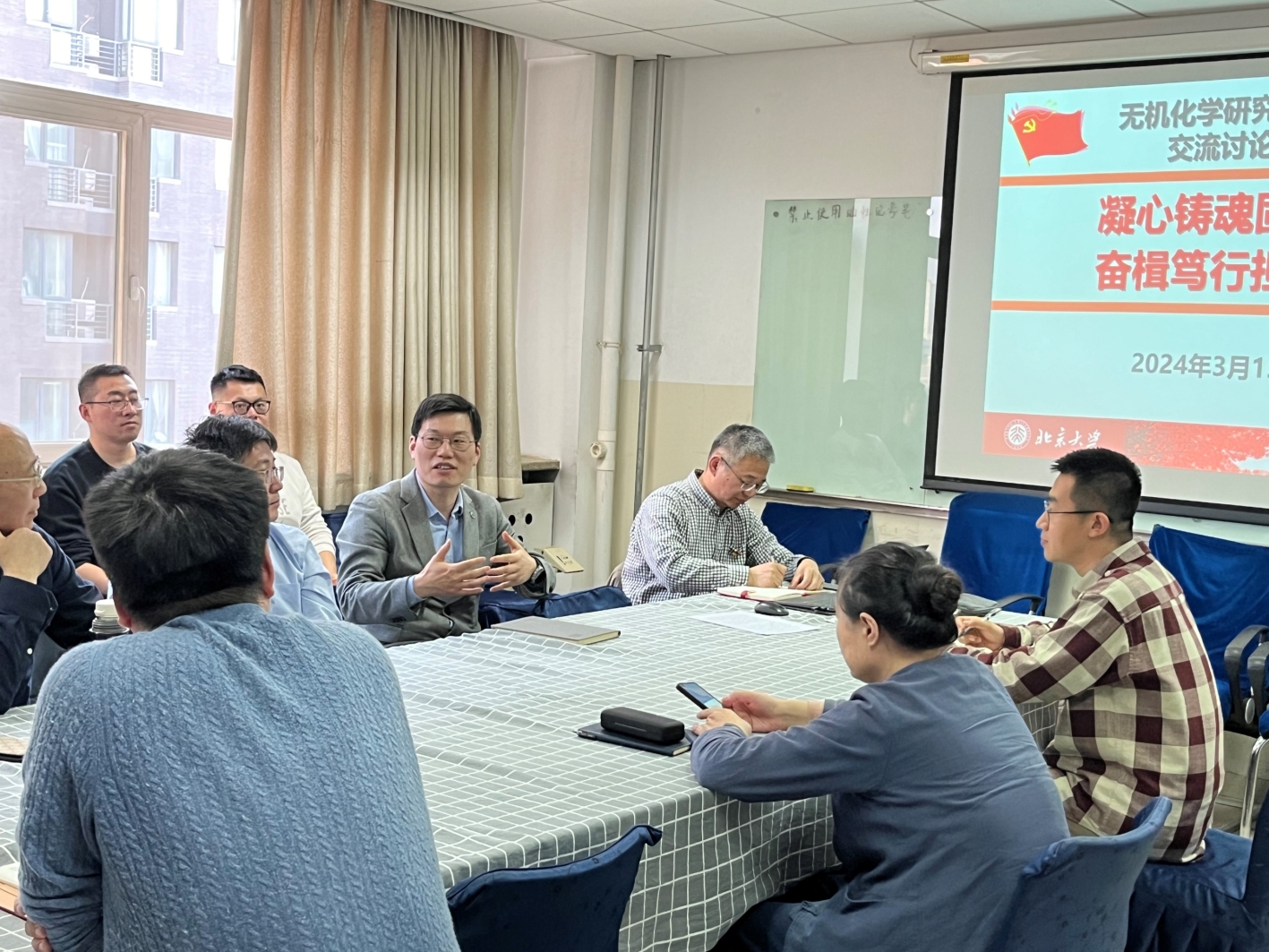 2024年3月13日,无机所党支部开展了“凝心铸魂固根本,奋楫笃行担使命”为主题的交流讨论会,无机所党支部书记张文雄老师、化学学院党委委员刘志伟老师等13位党员参加了讨论会。