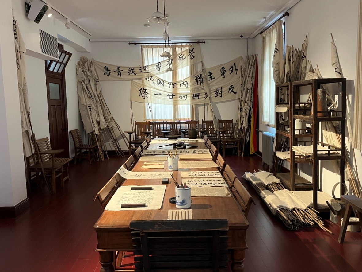 北京大学红楼是一座承载着丰富历史与革命精神的重要建筑,是新文化运动的中心、五四运动的策源地,中国最早传播马克思主义和民主科学进步思想的重要场所。伴随着工作人员的讲解,党员们参观了“光辉伟业红色序章——北大红楼与中国共产党早期北京革命活动主题展”。展览入口,习近平总书记在北京大学师生座谈会上的讲话“中国共产党的主要创始人和一些早期著名活动家,正是在北大工作或学习期间开始阅读马克思主义著作、传播马克思主义的,并推动了中国共产党的建立”映入眼帘,彰显了北京大学在中国共产党早期革命活动中的重要作用。此次展览精心复原了李大钊同志曾经工作过的图书馆主任室、毛泽东同志曾经工作过的第二阅览室、蔡元培先生工作过的校长室、陈独秀同志工作过的文科学长室以及作为五四运动策源地的新潮社址等旧址,陈列了蔡元培先生为北京大学设计的校旗以及鲁迅先生为北京大学设计的校徽等北大元素。通过丰富的文物、图片、雕塑以及多媒体展览,详细讲述了五四运动、马克思主义在中国的早期传播以及中国共产党的创立等重要历史事件,生动再现了以李大钊、陈独秀、毛泽东为代表的革命先驱的生活和工作环境,以及他们在北大红楼等地传播马克思主义、推动中国革命的光辉历程,让我们身临其境地感受到了那段光辉的历史。