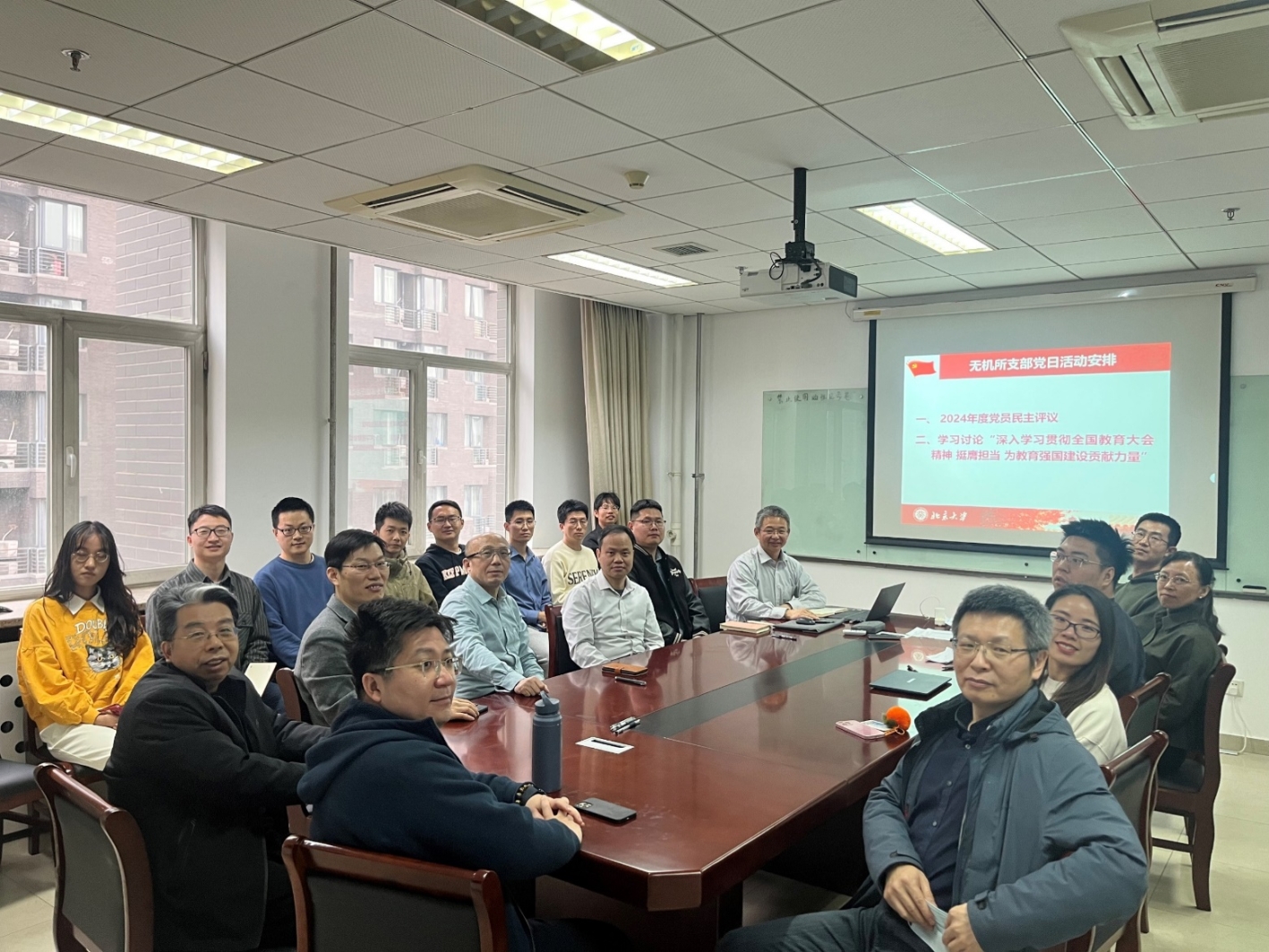为坚持和加强党的全面领导,深入学习贯彻全国教育大会精神。2025年3月13日,无机化学所党支部召开了2024年度组织生活会暨集体学习全国教育大会精神讨论会。化学学院党委委员刘志伟列席指导,无机所党支部书记张文雄及二十多名党员参加会议。