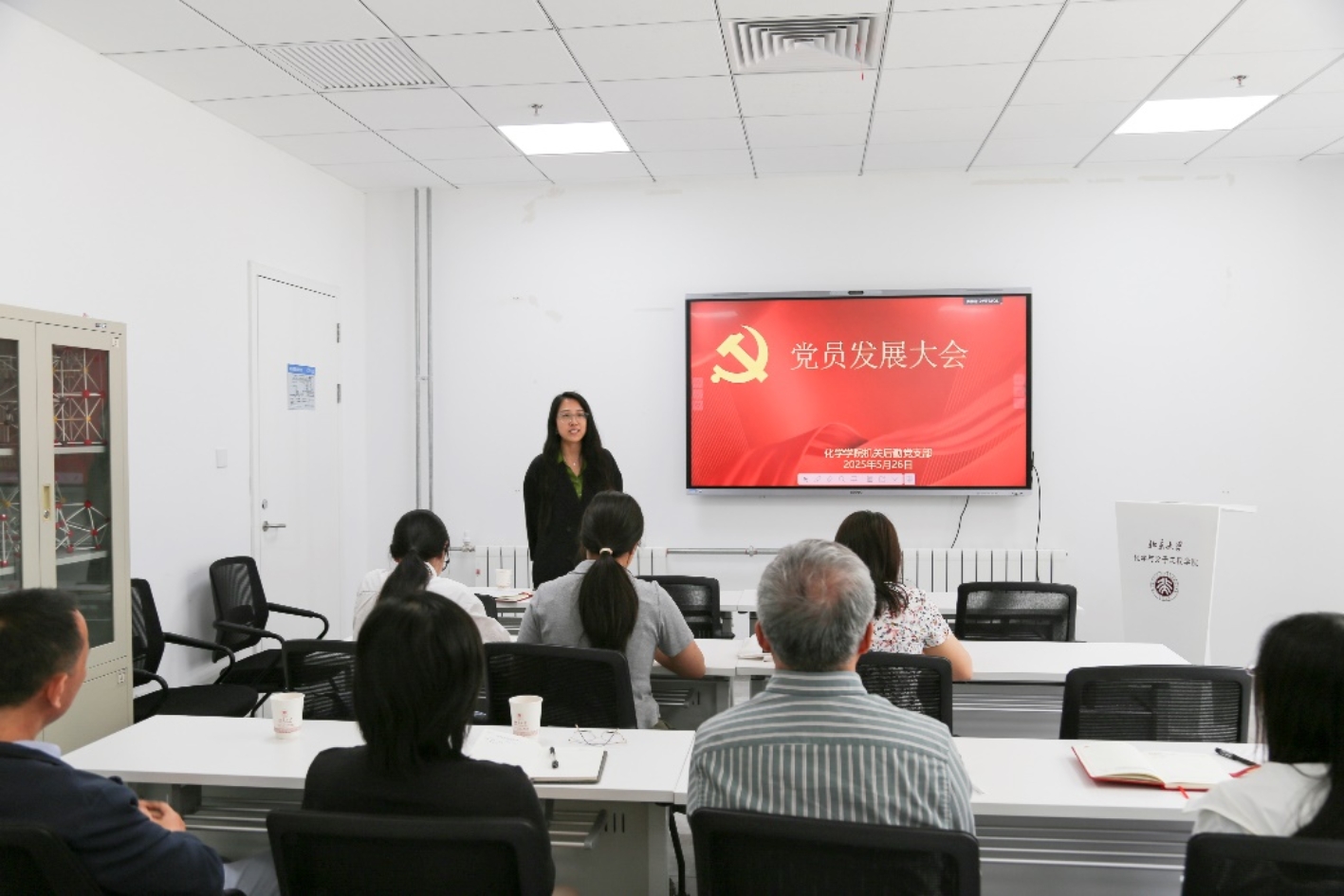 宣传委员刘德佳代表支委会向大会汇报了姜婕筠的政治审查情况。与会党员围绕姜婕筠在思想、工作和生活中的表现展开充分讨论。大家一致认为,姜婕筠政治立场坚定,热爱祖国,拥护中国共产党的领导,自觉遵守国家法律法规和单位规章制度。自2019年7月入职北京大学化学与分子工程学院以来,一直在科研办公室科研秘书岗位上勤勉尽责,展示了较高的业务能力和良好的职业道德,在疫情防控等突发事件中,积极响应党组织号召,主动参与线下封闭值班工作,展现出良好的政治素养和大局意识。在日常生活和工作中,团结同事,乐于助人,热心公益事业,积极参与学院工会组织的各项文体活动并在活动中有突出表现,赢得了群众的广泛认可。曾获2024年北京大学“优秀工会积极分子”奖励。