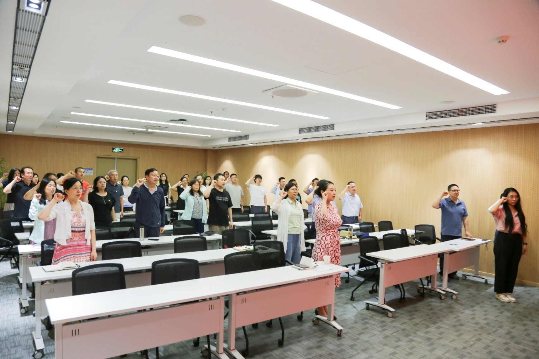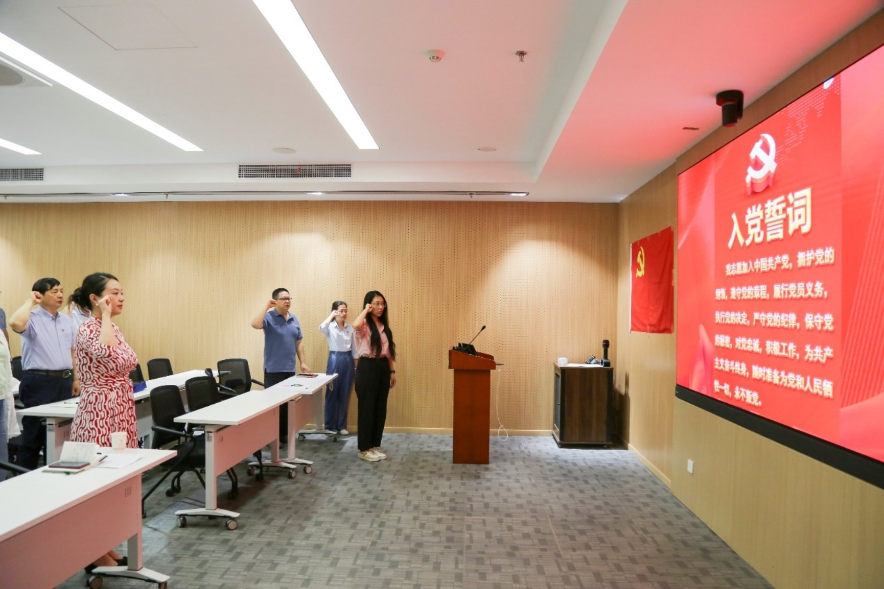 会议的最后一项内容是新预备党员姜老师的入党宣誓。全体党员共同参与了庄严的宣誓仪式,牢记初心,郑重承诺始终保持共产党员的先进性和纯洁性。在庄严的宣誓声中,大家深刻感受到作为党员的责任与使命,激励每位党员更加坚定理想信念,不忘初心,继续前行。