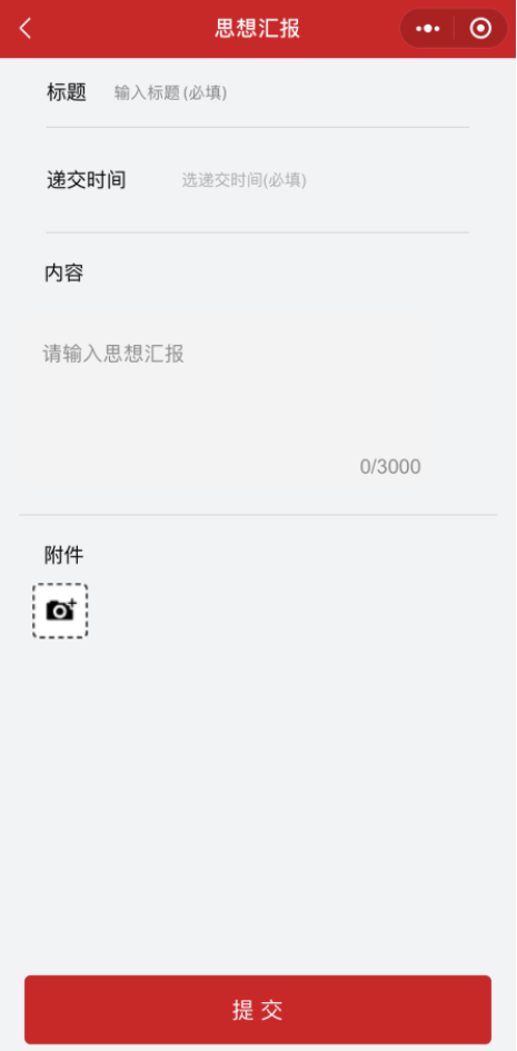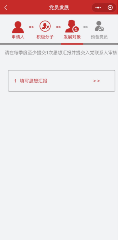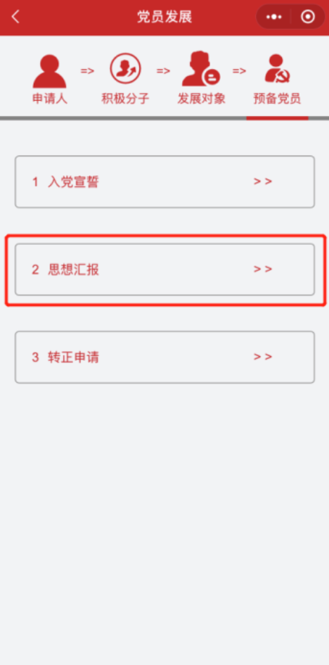申请人在移动端提交的入党申请书,支部管理员审批通过后,申请人可提交“思想汇报”。