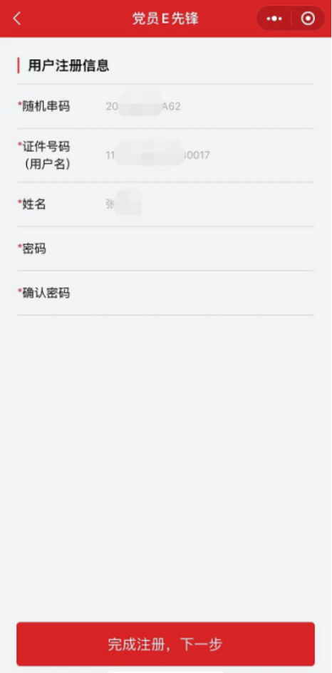 3.按要求填写个人相关信息,“随机串码”联系党支部管理员。填写各项信息后登录。