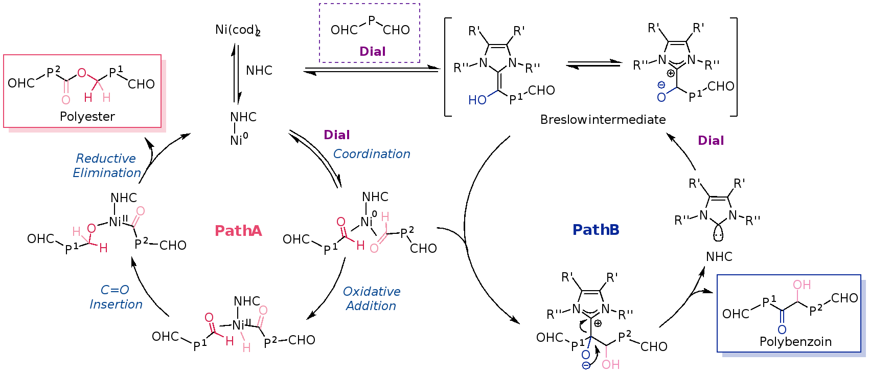 图2. Ni(0)/NHC体系催化芳香二醛配位歧化聚合机理