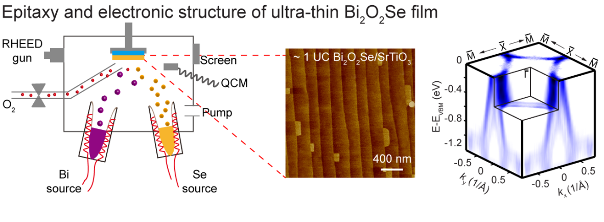 图2:原子级厚度Bi2O2Se薄膜的外延生长及电子结构解析