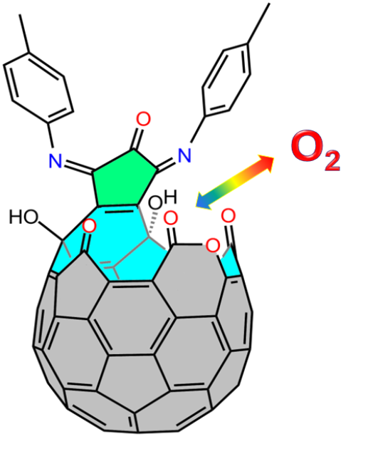 甘良兵课题组的研究结果表明开孔富勒烯在递氧材料方面有潜在应用价值。许多医疗手段,例如组织体外培养、活性氧物种(Reactive oxygen species, ROS)杀菌和肿瘤的光动力治疗(Photodynamic therapy, PDT)中均需要充足的氧气供应,目前文献报道较多的递氧材料主要有修饰的血红素、碳氟化合物和金属过氧化物等。开孔富勒烯作为分子纳米材料为递氧材料提供了新的研究方向。