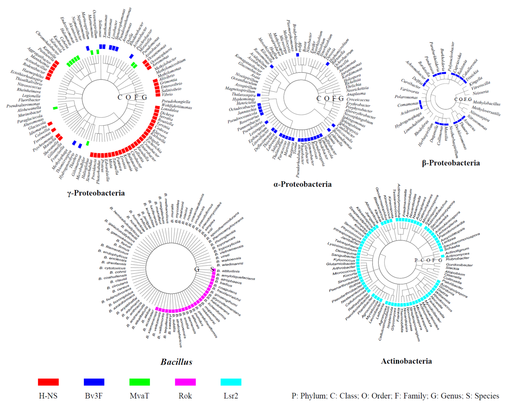1. 外源基因沉默因子H-NSBv3FMvaTRokLsr2在不同细菌中的分布
