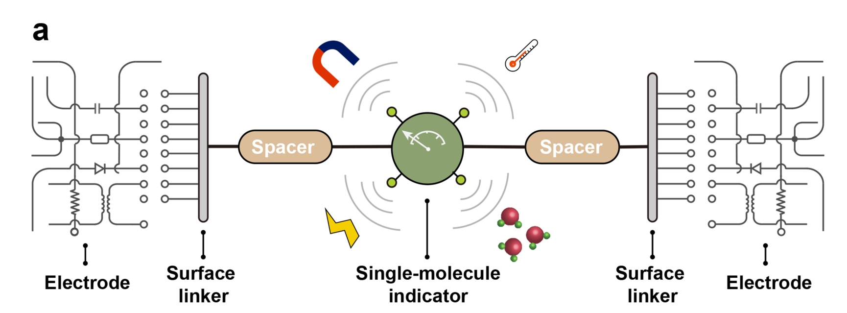 免标记的超高时空分辨率的单分子电学检测平台可用于对复杂溶液微观结构和相互作用的精准测量,为揭示溶液在化学反应和生命过程中的作用原理提供了一种新的思路。该工作于11月18日以“Accurate single-molecule indicator of solvent effects”为题在线发表在JACS Au杂志上(JACS Au 2021, https://doi.org/10.1021/jacsau.1c00400)。该工作的共同第一作者是北京大学化学与分子工程学院博士生郭逸霖和杨晨,北京大学化学与分子工程学院郭雪峰教授为通讯作者。研究得到了国家自然科学基金委、科技部和北京分子科学国家研究中心的联合资助。