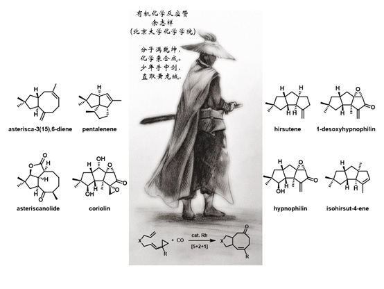 图1: [5+2+1]反应和利用该反应已合成的天然产物分子(人物素描由深圳市龙华区实验学校初中部学生沈欣提供)