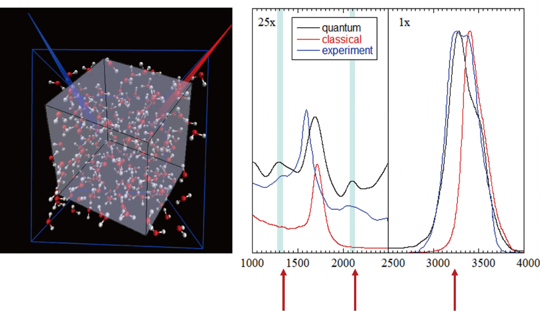 图1:采用Wigner相空间的轨线动力学方法对于液相水拉曼光谱的模拟结果。