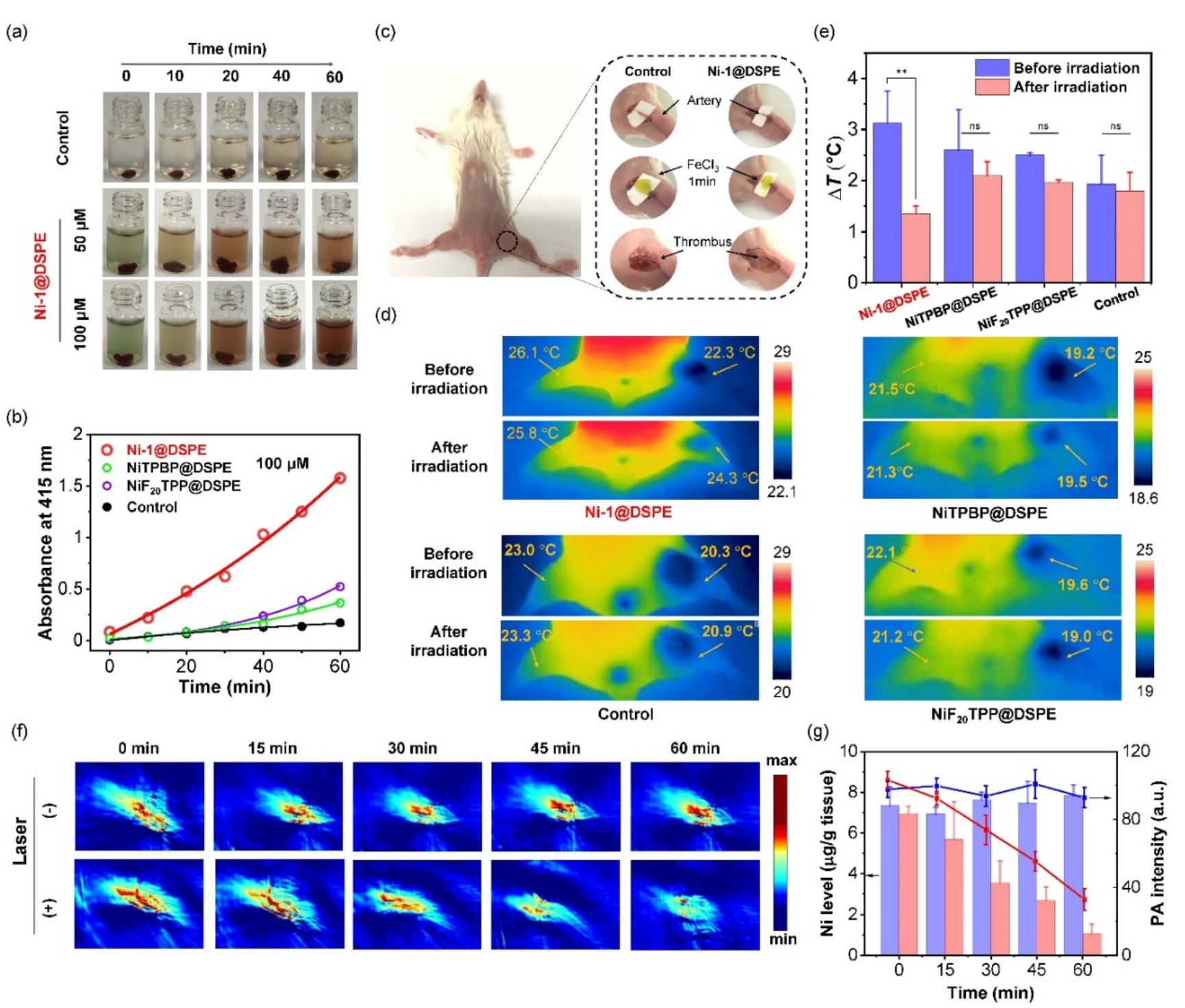 图3. 镍配合物“概念性验证”光热溶栓