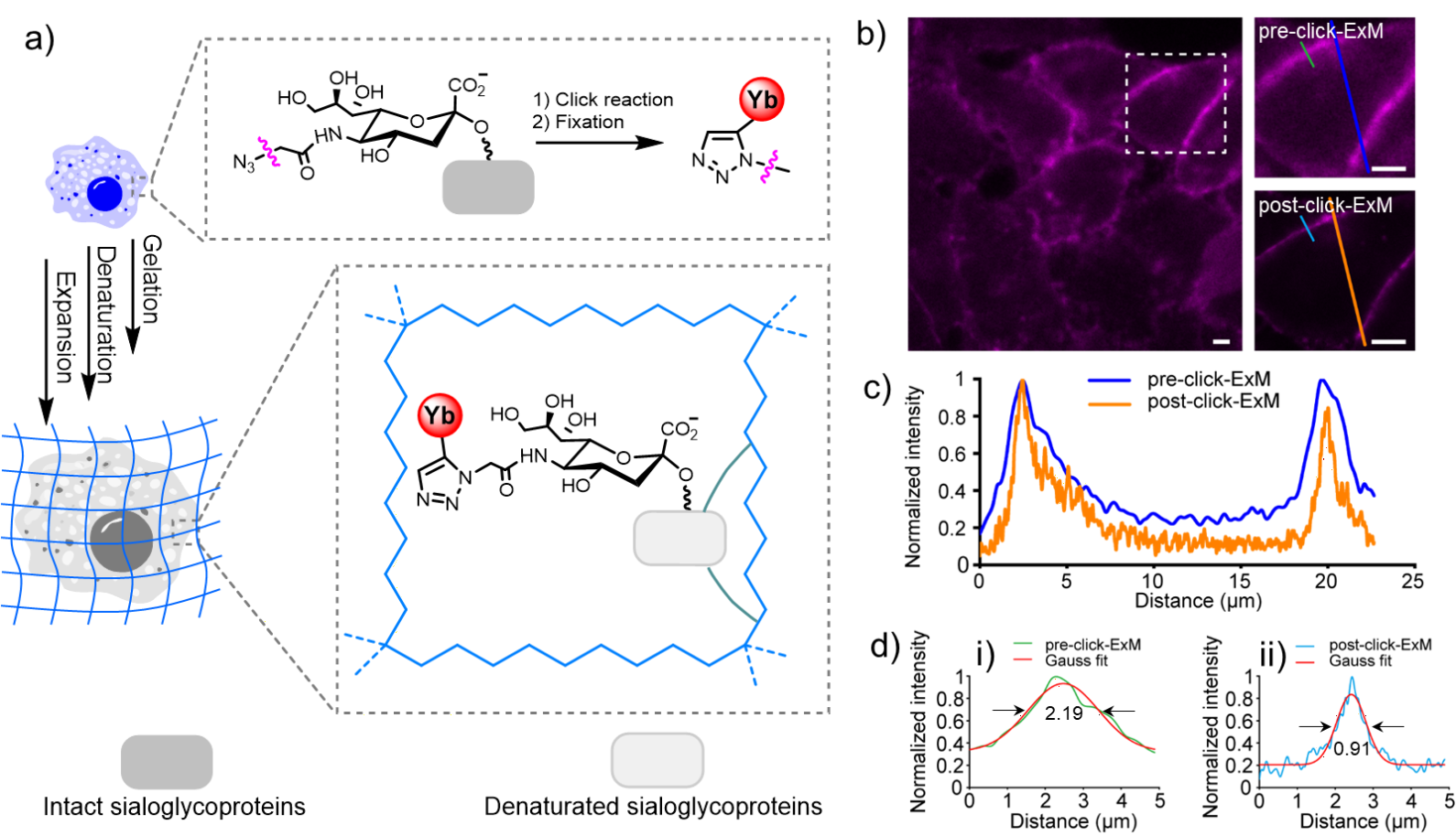 图3. 近红外膨胀显微成像(Click-ExM)标记唾液酸修饰糖蛋白。