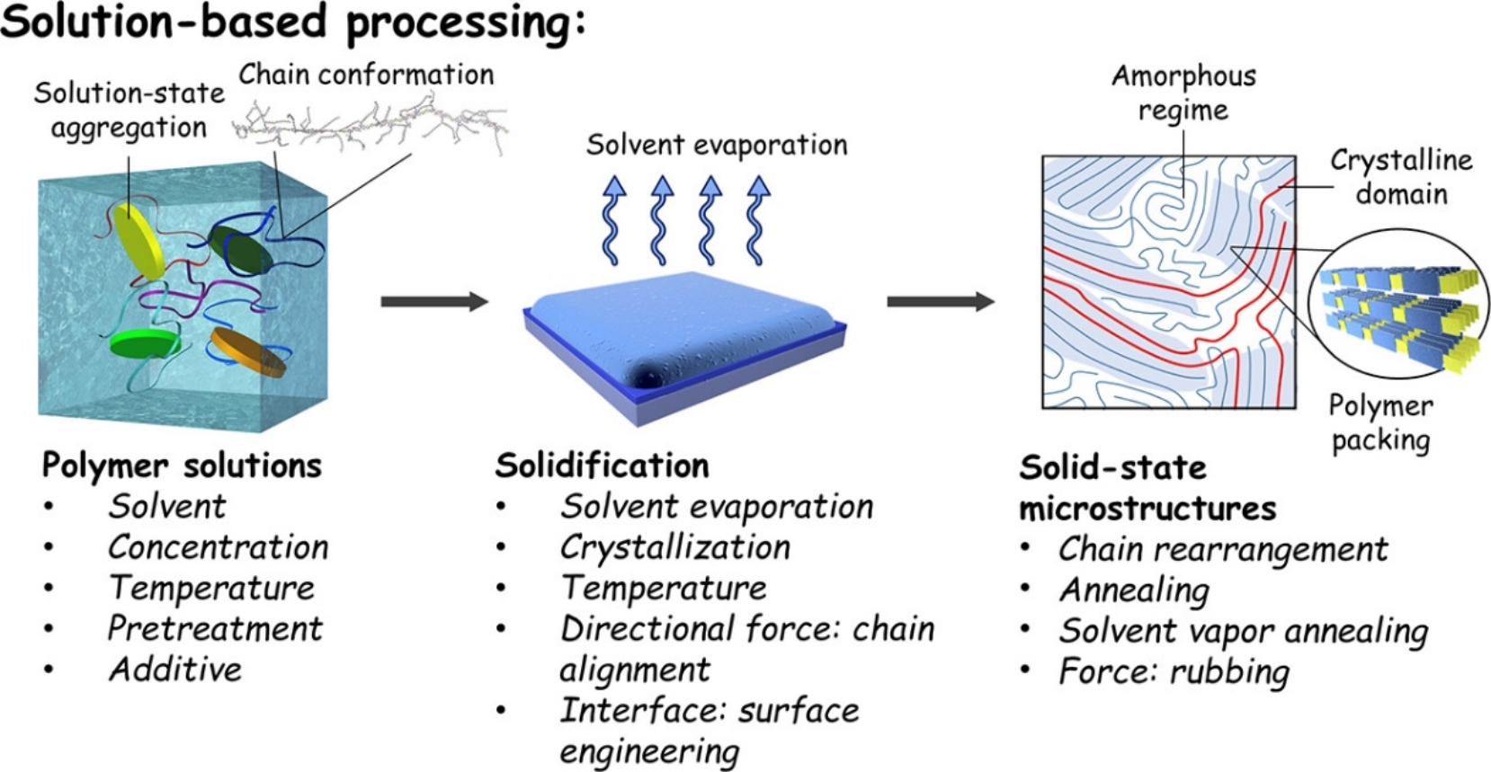 图4溶液加工过程各个阶段调控共轭高分子微观形貌的策略