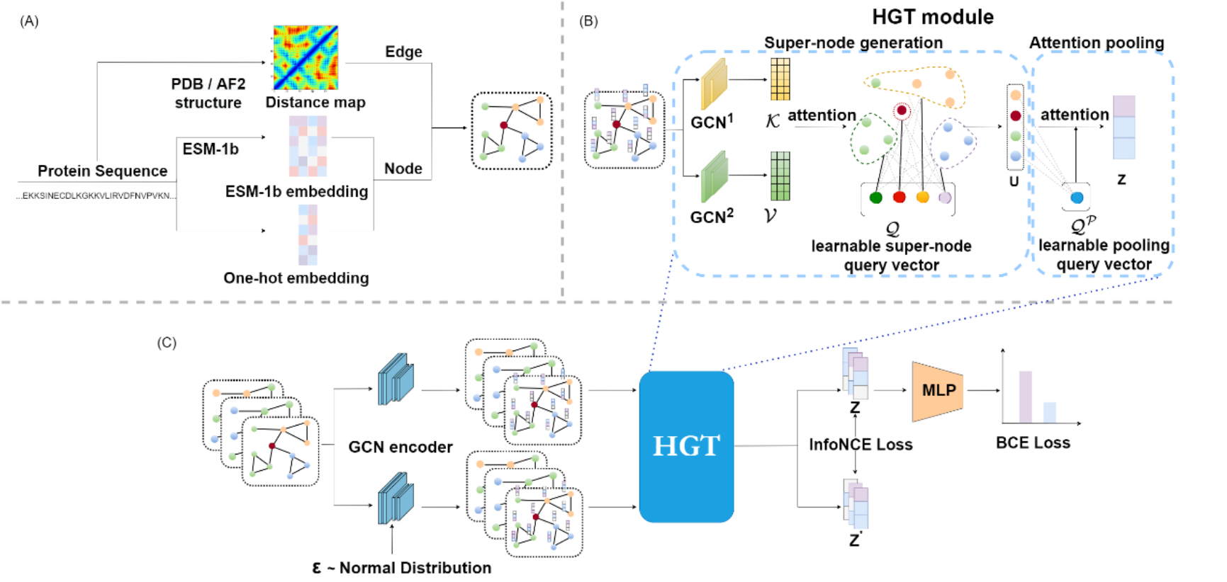 北京大学化学与分子工程学院、定量生物学中心、北京大学-清华大学生命科学联合中心来鲁华课题组与北京大学数学科学学院、定量生物学中心邓明华课题组合作发展了一种新的蛋白质功能预测模型:HEAL(Hierarchical graphtransformEr with contrAstive Learning)。HEAL利用Hierarchical Graph Transformer(HGT)来学习蛋白质的结构信息。该方法通过引入模仿功能motif的超节点,与蛋白质图中的残基节点进行交互,并通过池化操作生成蛋白质图的嵌入表示。为了增强网络的表达能力,HEAL还引入了图对比学习,以最大化不同视图之间的相似性。此外,HEAL模型还利用AlphaFold2预测蛋白质结构的功能信息,以提升在实际应用场景中的性能表现。