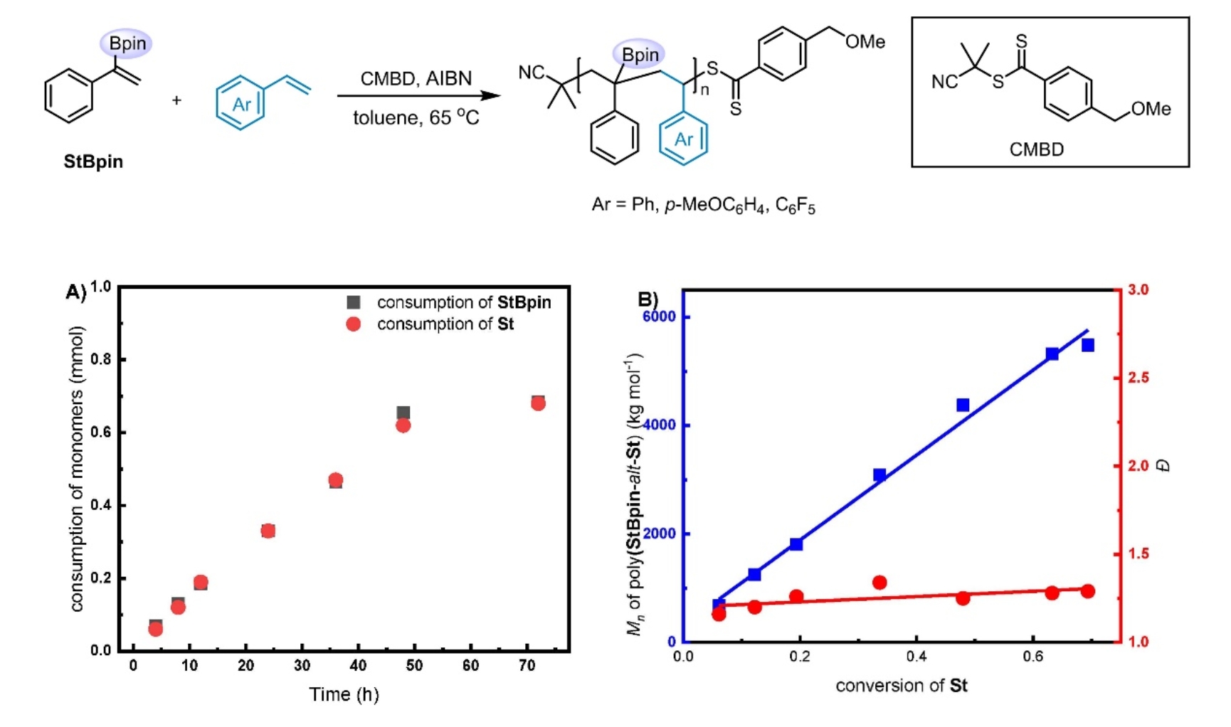 图3. StBpin与取代苯乙烯的RAFT自由基共聚