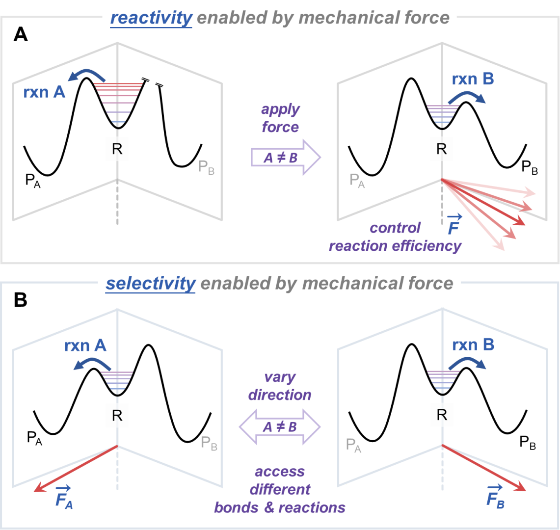 一般而言,改变力敏团受力方向不会改变反应性最高的化学键,相对的只有反应效率或产物分布受到影响。作者发掘的BCH骨架,揭示了力矢量方向可以产生多样化的化学反应性这一新范式,为未来力敏团的设计带来了全新的思路。可以想象,力作为外加刺激源,能重新定义潜在的,未知的化学反应位点,通过与其他物理作用相结合,可以开拓更加广阔的化学反应空间。