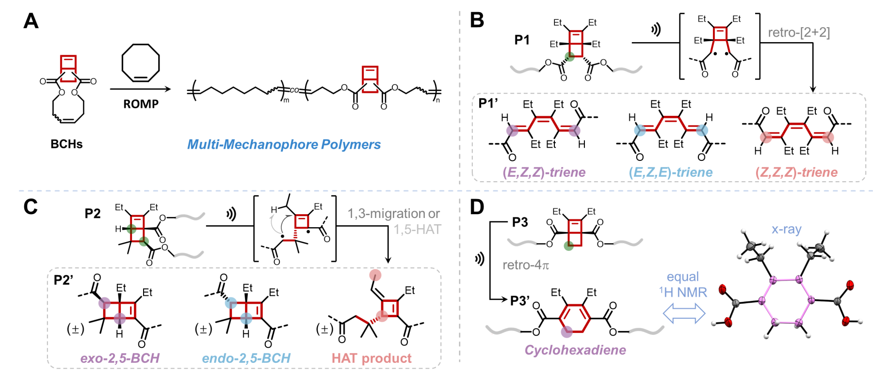 图3 主链含BCH聚合物的制备,及其在超声作用下得到的力化学反应产物