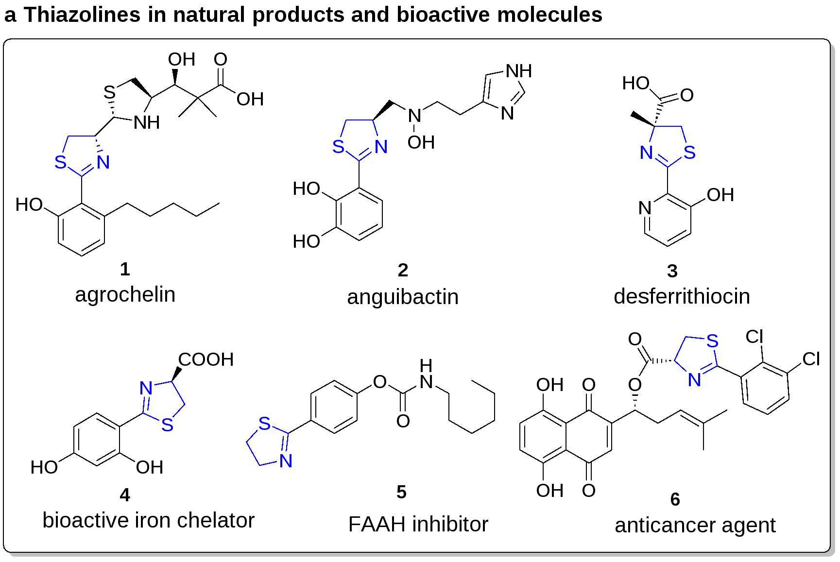 图1:含有噻唑啉结构的药物分子与天然产物