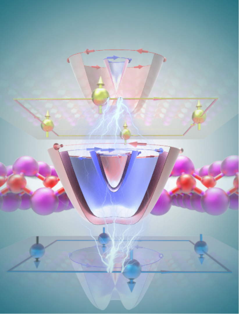图1. 基于二维硒氧化铋体系的隐藏自旋极化诱导的偶数量子霍尔效应示意图。