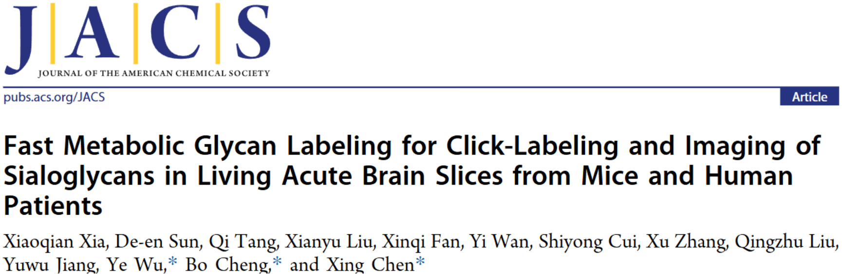 北京大学化学与分子工程学院、北大-清华生命科学联合中心陈兴教授团队一直关注将化学糖生物学研究沿着从实验室到临床(bench-to-bedside)的方向推进,于2024年07月29日在J. Am. Chem. Soc.期刊上,与合作者一起在线发表题为“Fast Metabolic Glycan Labeling for Click-Labeling and Imaging of Sialoglycans in Living Acute Brain Slices from Mice and Human Patients”的研究论文,报道了一种快速代谢糖质标记技术(fMGL),解决了上述问题。
