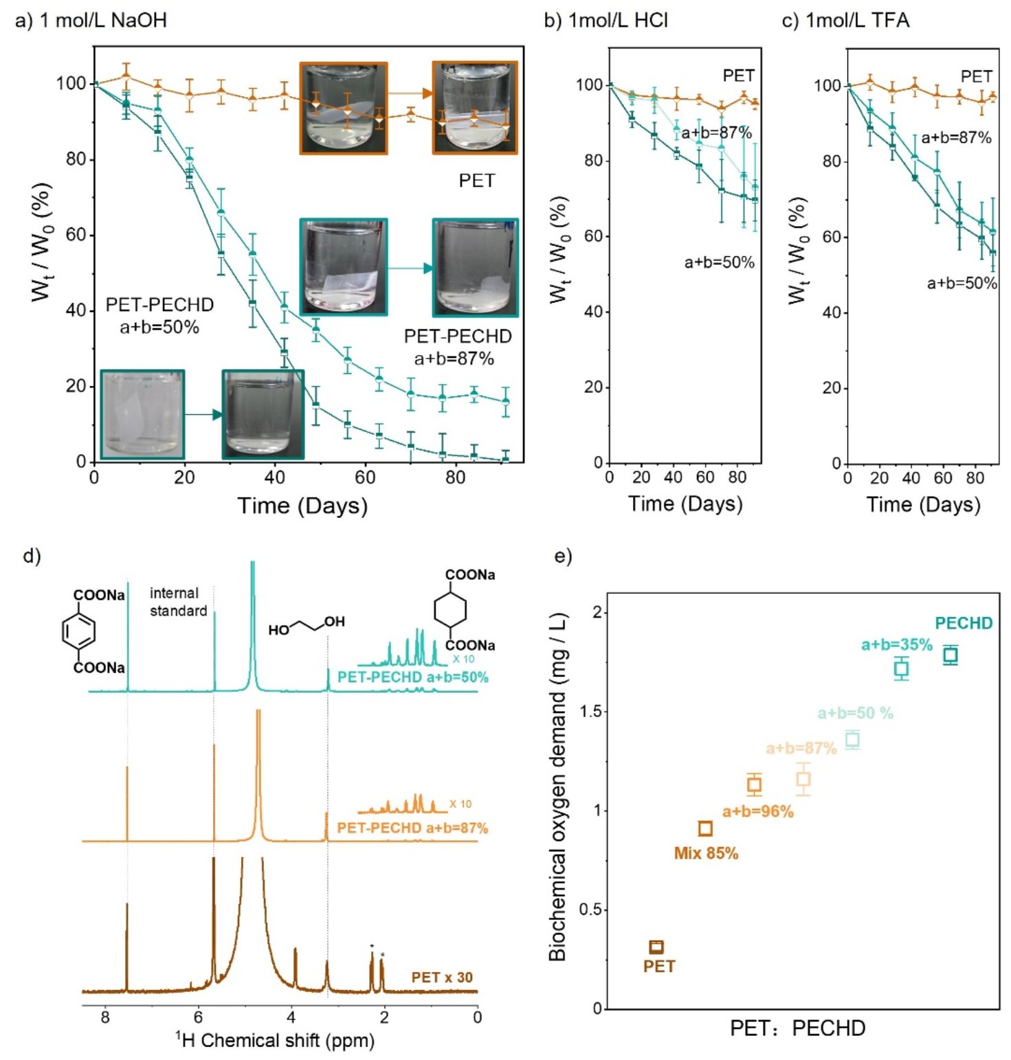 图3. 可降解聚酯PET-PECHD的降解性能评估