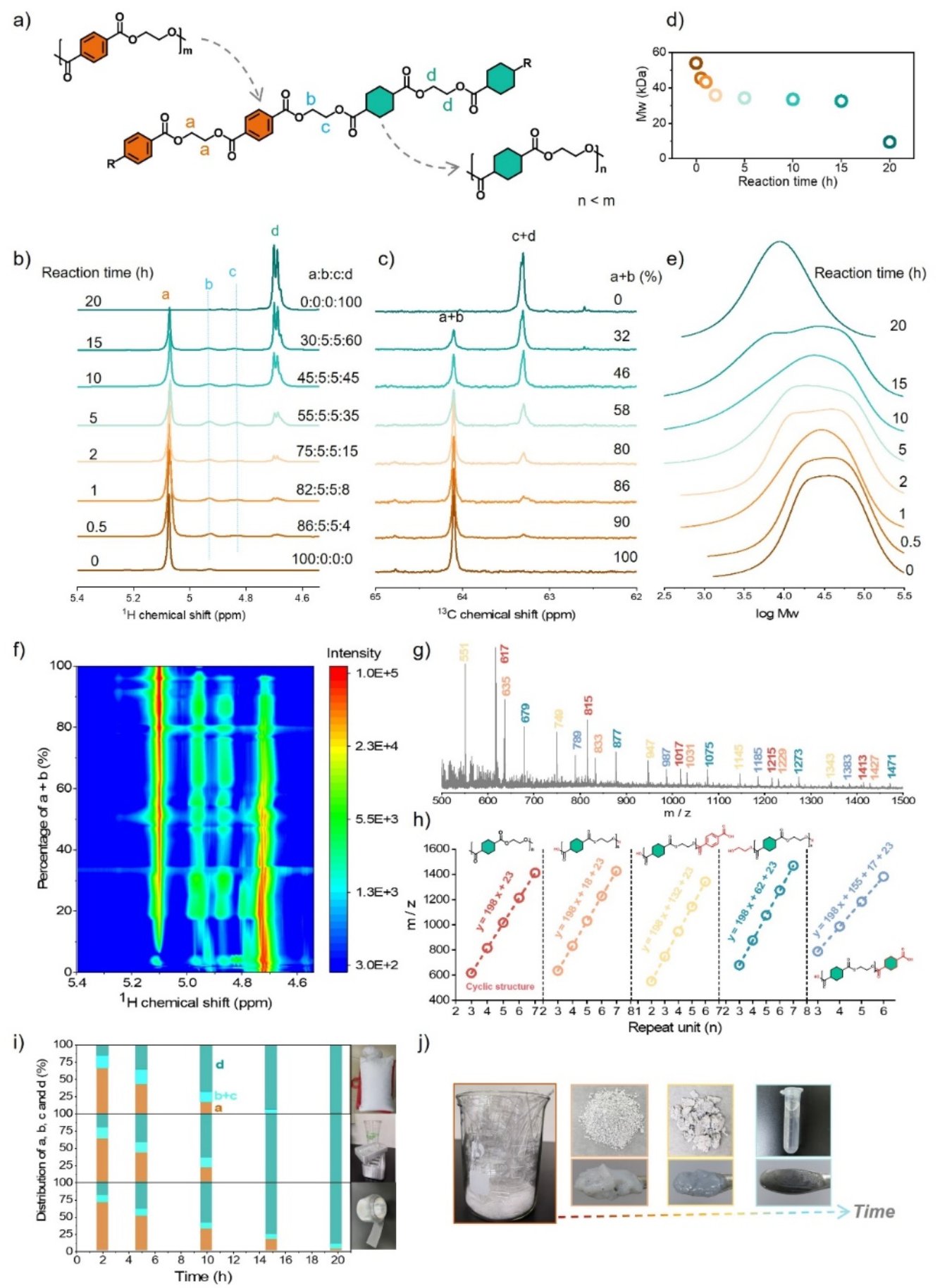 近日,北京大学化学与分子工程学院马丁/王蒙/唐小燕合作报道了一种废弃PET升级转化的新策略。该工作通过部分氢化PET链中的芳香环(x)为脂肪环(y),实现了将废弃的PET 转化为可降解聚酯(即共聚物),该聚酯称为聚对苯二甲酸乙二醇-聚1,4-环己烷二甲酸乙二醇酯(PET-PECHD)(图1)。通过反应条件的优化可以得到x/y 组成范围从100/0 到0/100 的聚酯,并且当x/y > 87/13 时,其分子量(Mw)能够保持稳定。