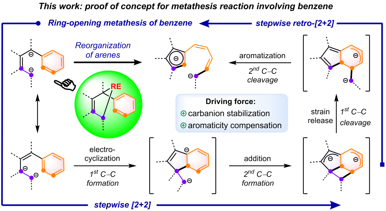 图1. 探索芳环开环复分解反应的研究思路