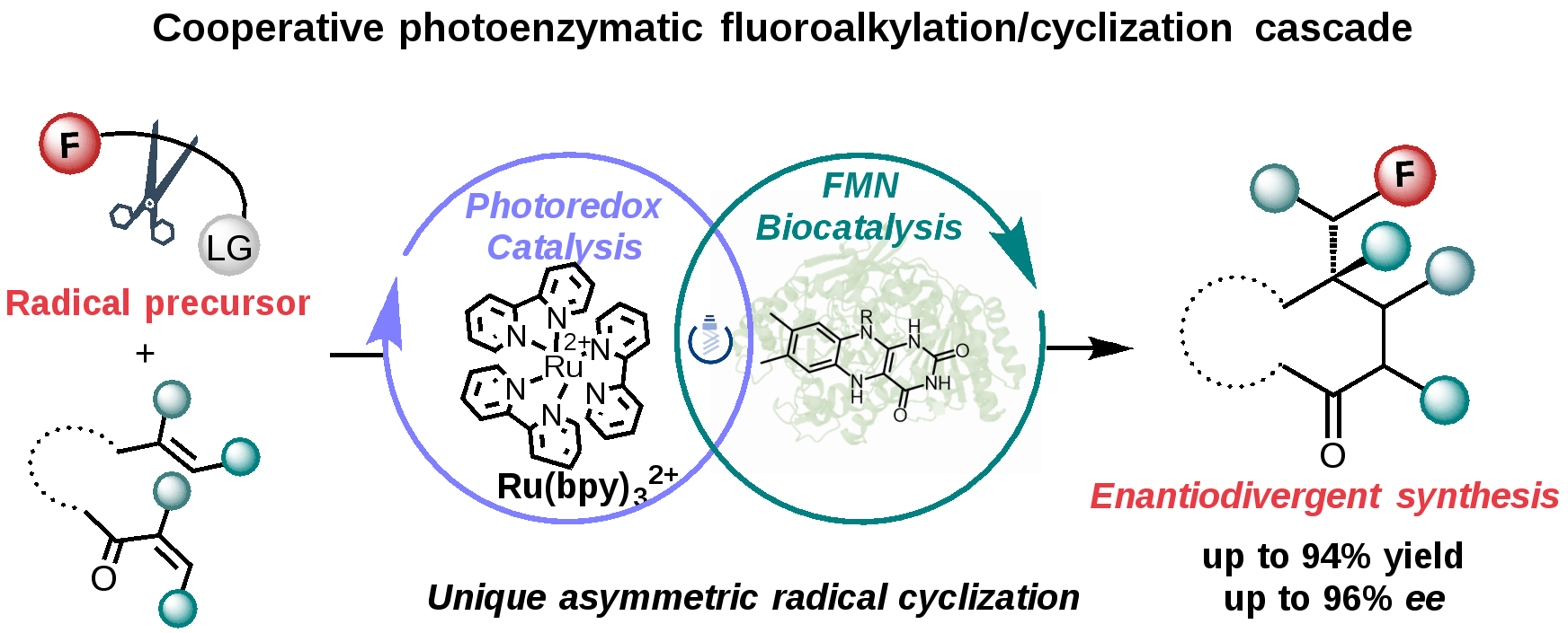 (图2)光酶协同催化的氟烷基化环化级联反应构建手性氟代环酮类化合物