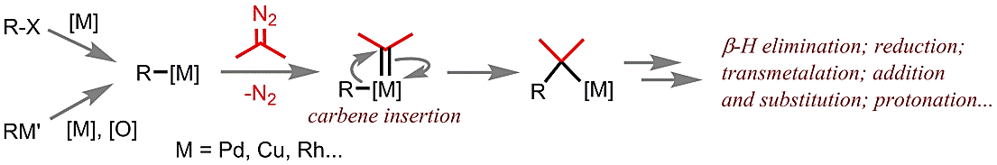 卡宾是有机反应的一类重要中间体,其特征是具有高度的反应活性,但是相应地反应的选择性差,在合成中的应用有限。通过卡宾与金属的络合形成金属卡宾可以有效地稳定这类活泼中间体,从而极大地提高其反应选择性。经由金属卡宾的催化反应已经发展成为有机合成化学中的一个十分重要的领域,其中一些反应在药物分子等的合成中得到工业应用。金属卡宾反应在化学生物学以及材料科学等领域也有重要的应用。