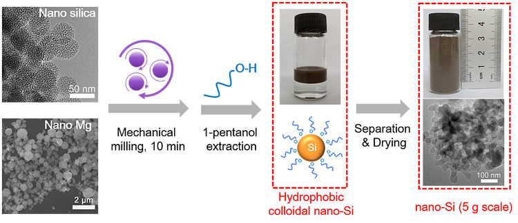 图4 以Mg和SiO2为原料反应球磨实现纳米硅粉的高效制备