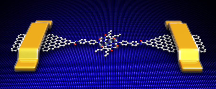器件结构示意图:利用超分子组装而成的单分子器件实现了对四重氢键组装动力学过程的直接检测。