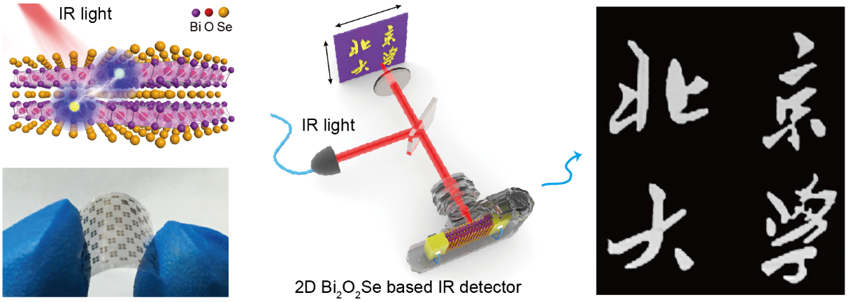 超快高敏二维Bi2O2Se红外探测器芯片材料示意图及其近红外成像展示