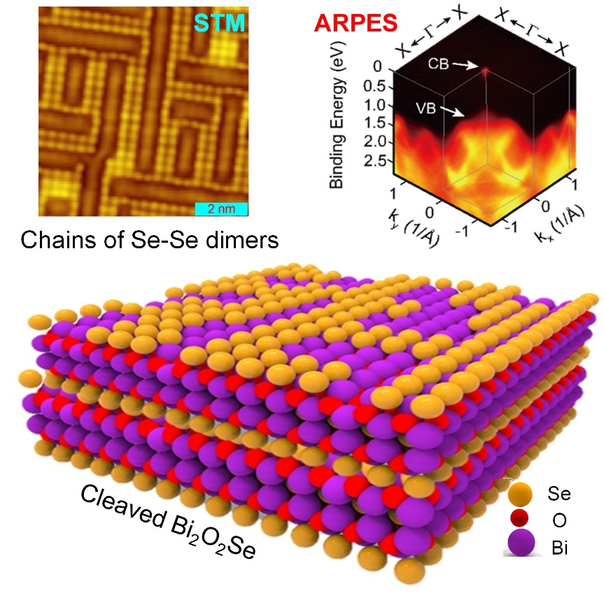 附图. 高迁移率层状Bi2O2Se半导体解理后的表面原子排布及电子结构