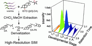 Under favorable conditions, Caenorhabditis elegans larvae grow into reproductive adults after a series of molting cycles. When environmental conditions are harsh, they arrest as dauer larvae. Dafachronic acid (DA), a C. elegans steroid hormone, is required for reproductive development. Here, we report a mass spectrometry (MS) method for absolute quantitation of DA in C. elegans. […]