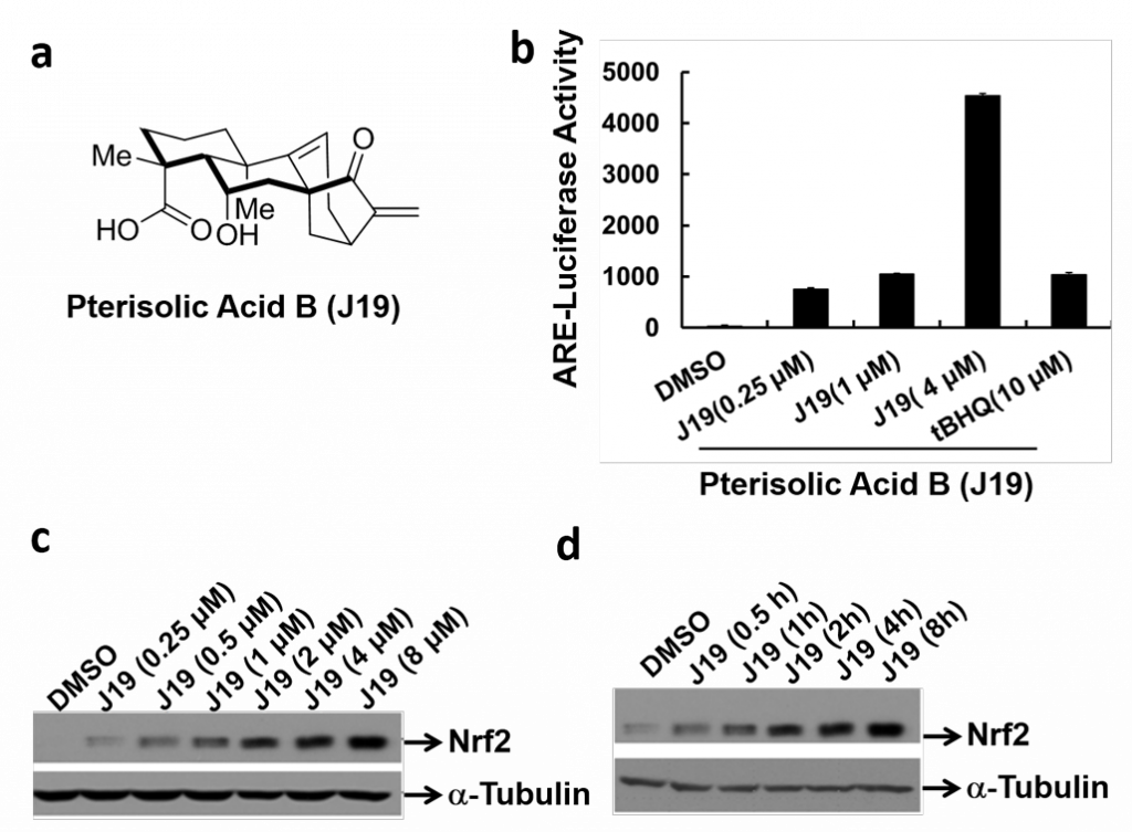 Abstract The use of chemoprotective agents to minimize the side effects of the chemotherapy, primarily via activation of the Nrf2 pathway, is an emerging research field, which has attracted broad attention from both academia and pharmaceutical industry. Through high-throughput chemical screens we have disclosed that pterisolic acid B (J19), a naturally occuring diterpenoid, is an […]