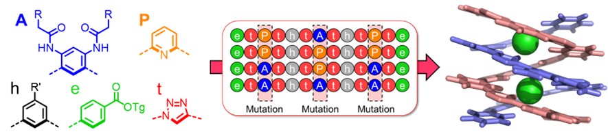 • 11. Sequence-controlled stimuli-responsive single-double helix conversion between 1:1 and 2:2 chloride-foldamer complexes