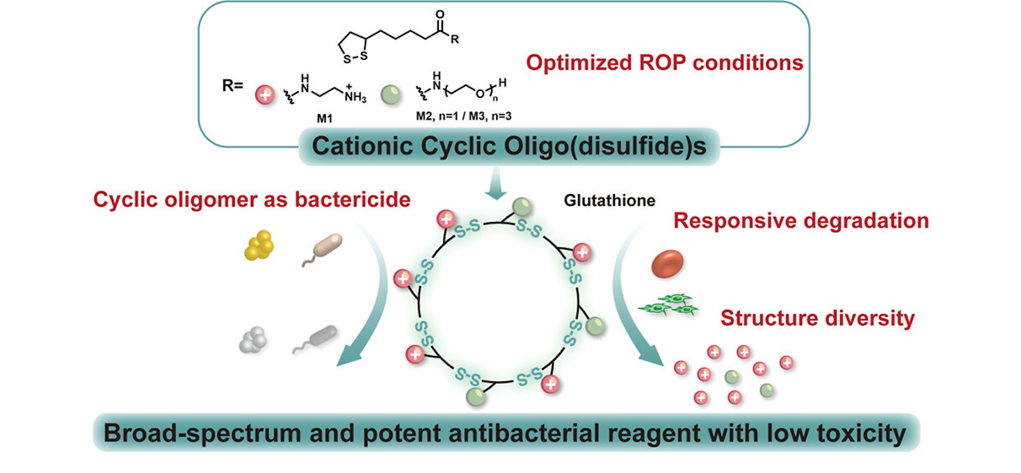 • 24. Synthesis of cationic cyclic oligo(disulfide)s via cyclo-depolymerization: A redox-responsive and potent antibacterial reagent