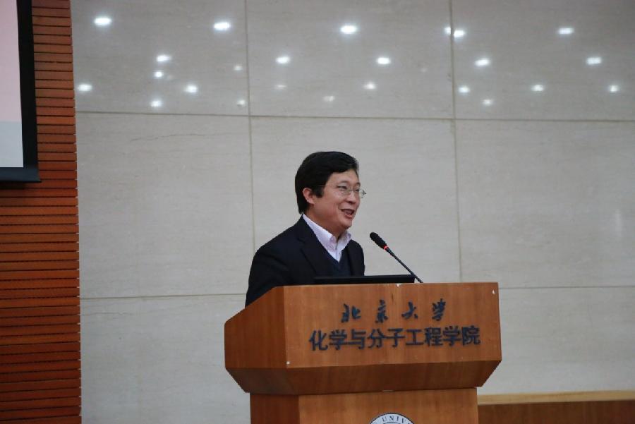 谢有畅教授作为奖学金捐赠方代表致辞,他向各位同学介绍了先锋公司近期在科研和生产领域中的创新和进展,而这些都与化学学院广大师生的科研工作密不可分。谢老师还介绍了先锋公司大力资助化学学院师生的情况,并向所有获奖同学表示祝贺,希望他们能够继续在学习和科研道路上取得进步,并在未来反哺学校和社会。