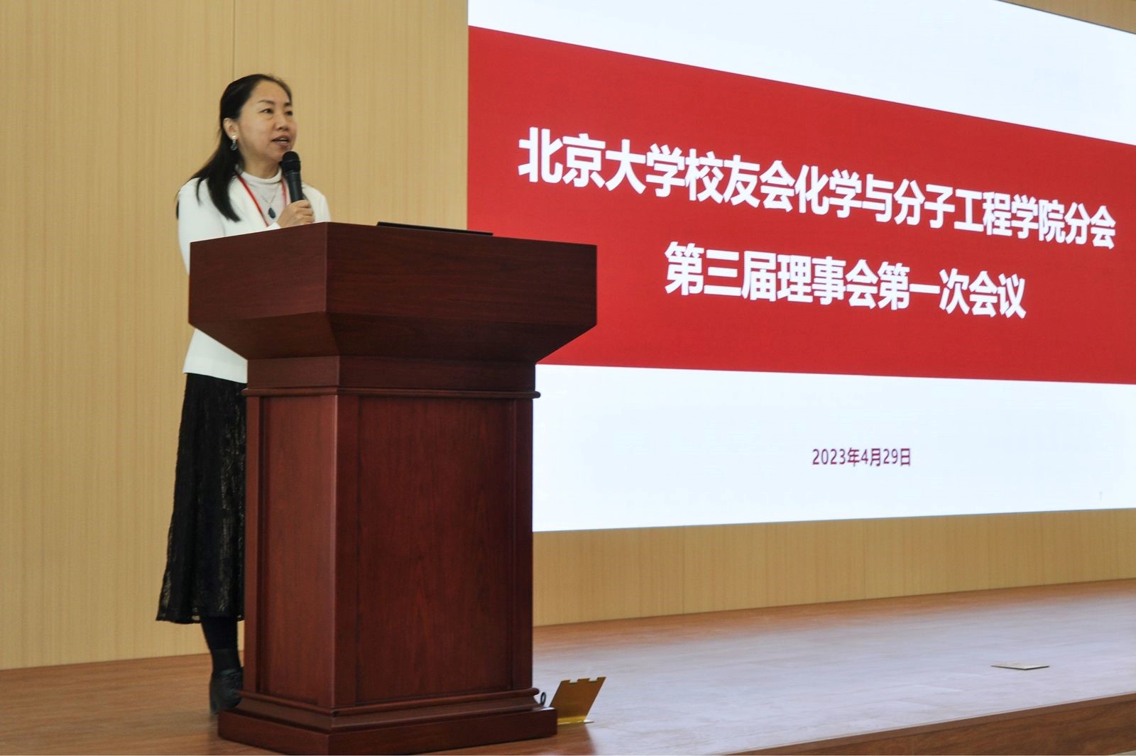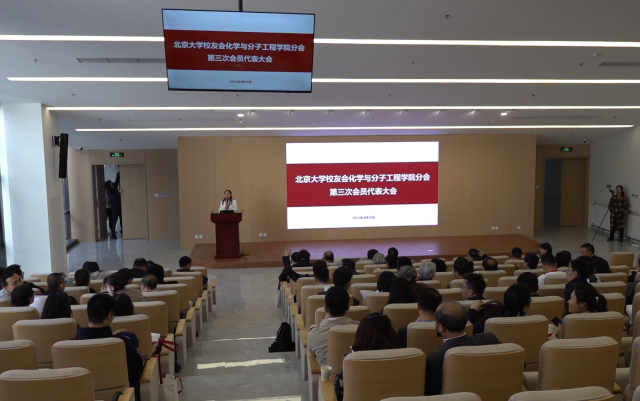 2023年4月29日上午,北京大学校友会化学与分子工程学院分会第三次会员代表大会在化学学院C区新楼阶梯教室召开,来自化学学院各年级的154名校友代表通过线上线下相结合的方式参会。会议由化学学院党委副书记赵美萍主持。