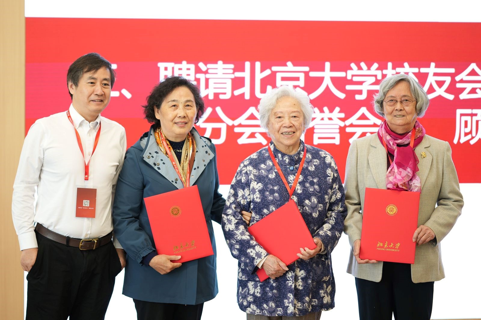 化学学院校友会的壮大和发展离不开校友和学院老师多年来的不懈努力与支持。北京大学校友会化学与分子工程学院分会聘请周其凤、林建华为名誉会长,聘请彭崇慧、叶蕴华、杨旭清、何永克、刘锋、严纯华、付贤智、刘虎威、黄维、厉伟、高松、李革、邵峰为顾问委员会委员,以感谢他们为化学学院校友工作做出的杰出贡献。裴坚代表化学学院校友会为顾问委员会代表颁发荣誉证书。